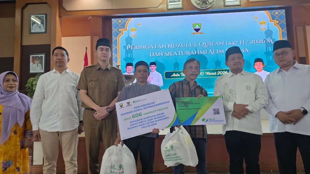 melalui pemberian perlindungan jaminan sosial ketenagakerjaan bagi 606 marbot masjid di Kabupaten Sumedang.