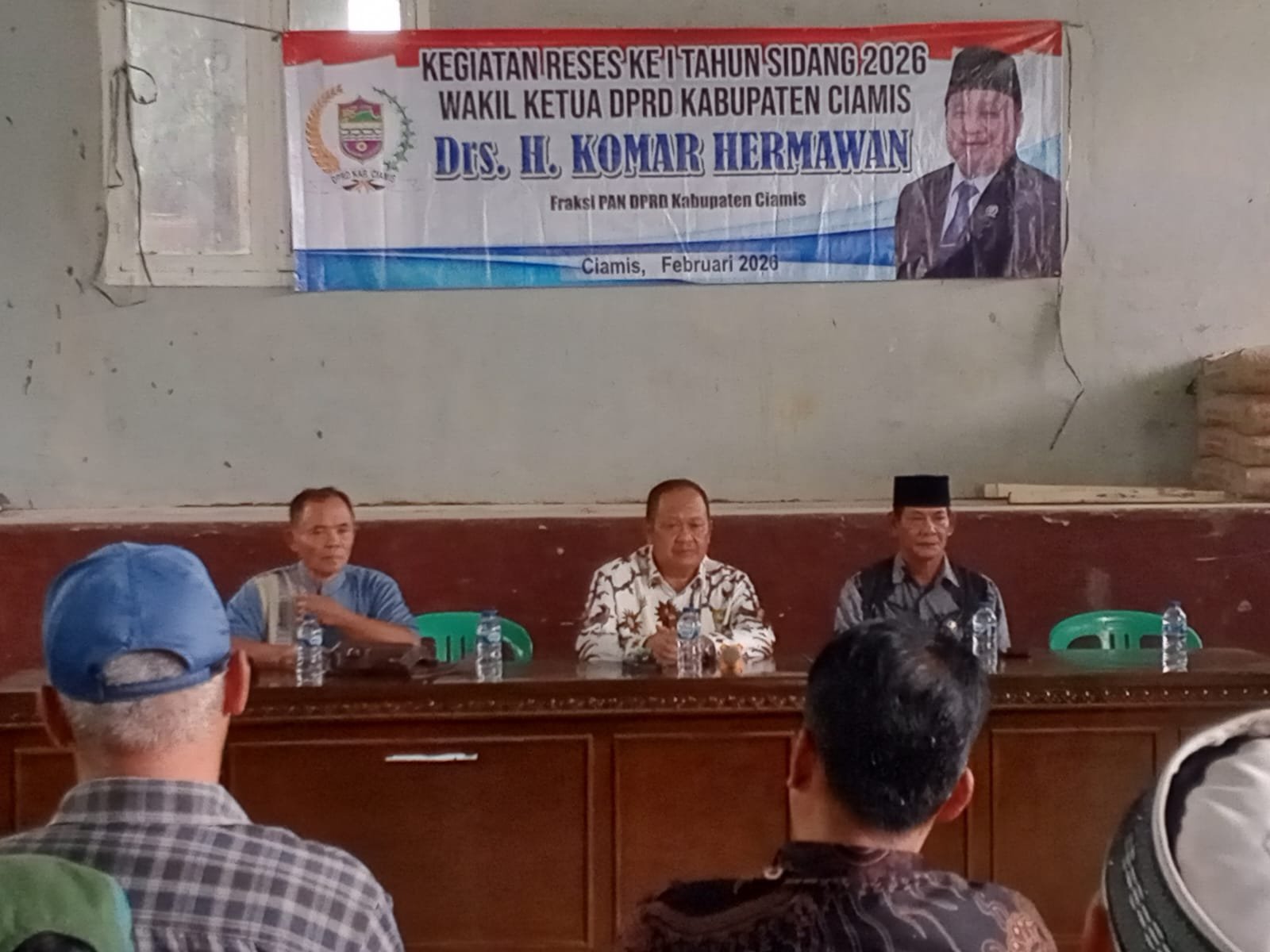 Drs. H. Komar, Wakil Ketua DPRD Kabupaten Ciamis dari Fraksi Partai Amanat Nasional (PAN), menyelenggarakan kegiatan reses Tahun Sidang 2026 Periode Pertama pada hari Jum’at, 13 Februari 2026, di Desa Indragiri, Kecamatan Panawangan.