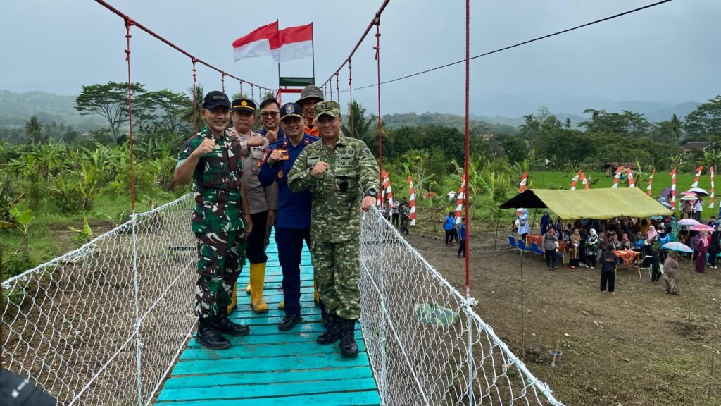 Sumedang Lensadeteksi.my.id Komandan Kodim 0610/Sumedang, Letkol Arh Kusuma Ardianto, S.I.P., M.Han meresmikan Jembatan Gantung Perintis Garuda Tahap 2 Tahun 2026 di Sungai Cikandung, Dusun Pari, Desa Wanajaya, Kecamatan Surian, Kabupaten Sumedang, Kamis (19/02/2026)