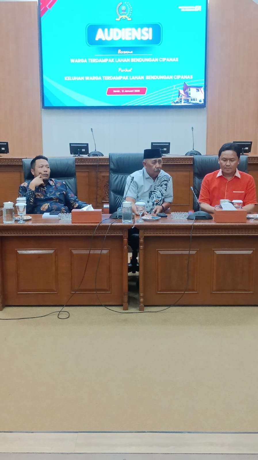 Sumedang Lensadeteksi.my.id Pimpinan DPRD Kabupaten Sumedang bersama komisi I menerima aspirasi dari warga terdampak lahan bendungan Cipanas pada Senin, 12 Januari 2026, bertempat di ruang rapat Paripurna, hadir dalam acara tersebut Kapolres Sumedang, Kejaksaan Negri Badan Pertanahan Nasional, BBWS, Camat Conggeang beserta warga masyarakat yang terdampak.