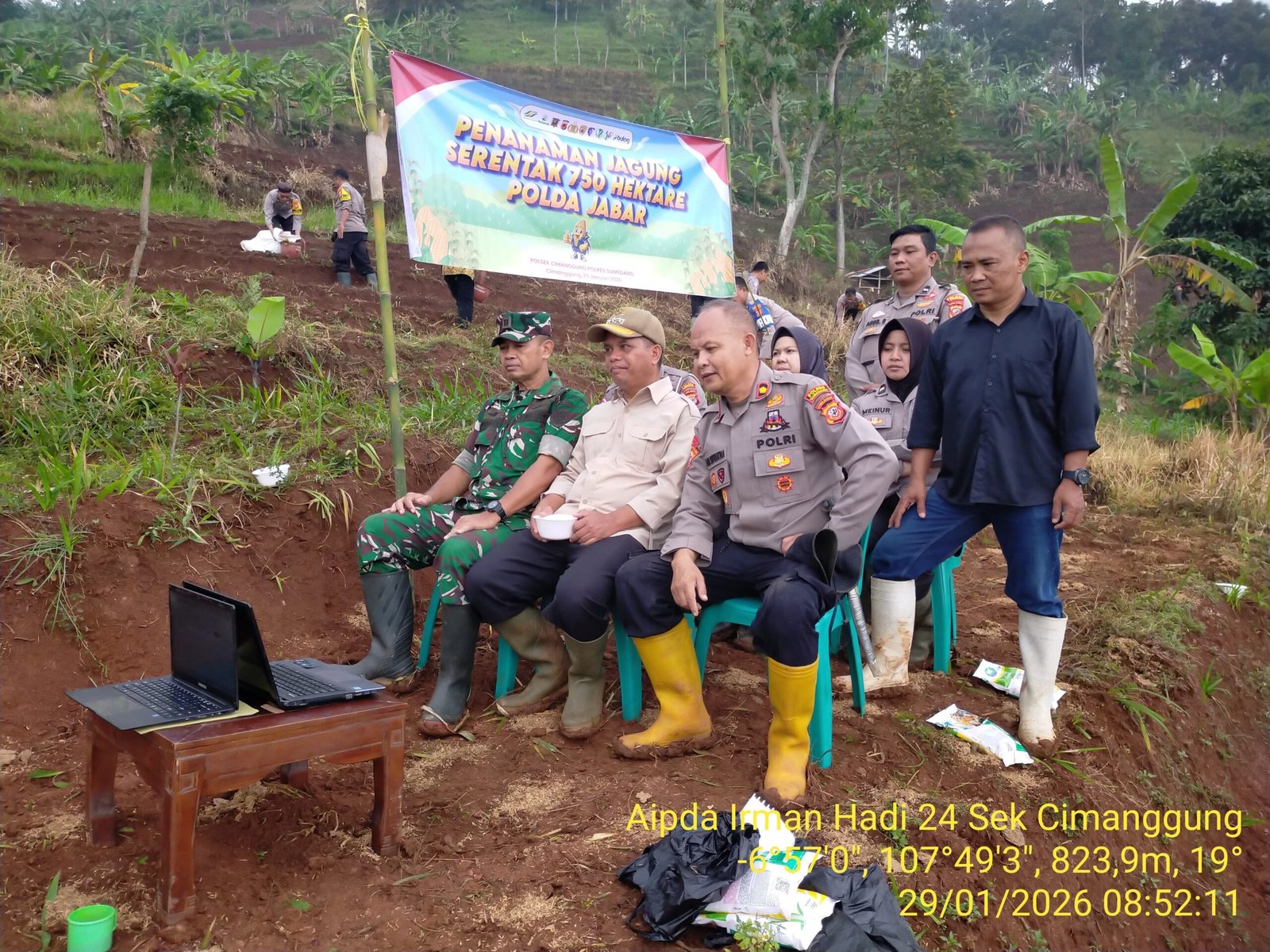 Sumedang, 29 Januari 2026 Lensadeteksi.my.id Polres Sumedang, bersama Polda Jabar dan Polsek Cimanggung, melaksanakan penanaman jagung serentak di lahan milik Yayasan Restu Alam Dinastira, Desa Cikahuripan, Cimanggung. Kegiatan ini mendukung program swasembada pangan nasional 2026 dengan target penanaman jagung di 1 juta hektare lahan.