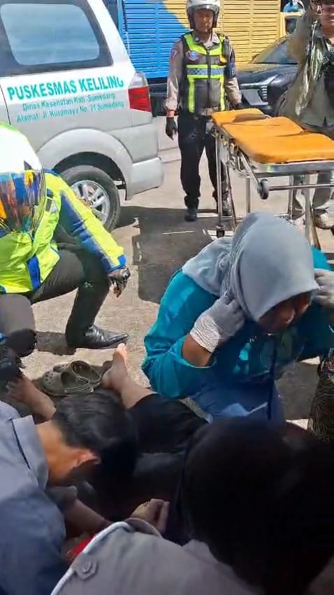 Menindaklanjuti laporan tersebut, IPTU Gun Gun Gunawan langsung memerintahkan driver ambulans Dinas Kesehatan Sumedang, Sdr. Doni bersama tim medis untuk segera menuju lokasi kejadian. Dalam proses penanganan, ambulans dikawal oleh Aiptu Gangan menggunakan kendaraan Patwal motor guna mempercepat evakuasi.