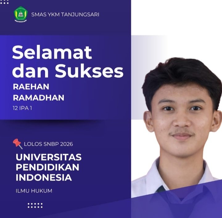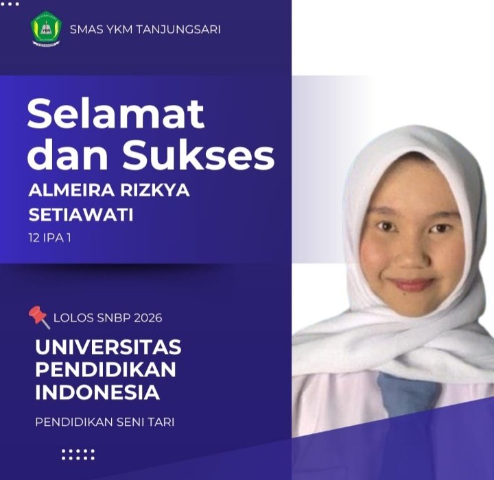 “Alhamdulillah, selamat kepada siswa-siswi SMAS YKM Tanjungsari yang berhasil masuk Perguruan Tinggi Negeri melalui jalur SNBP.